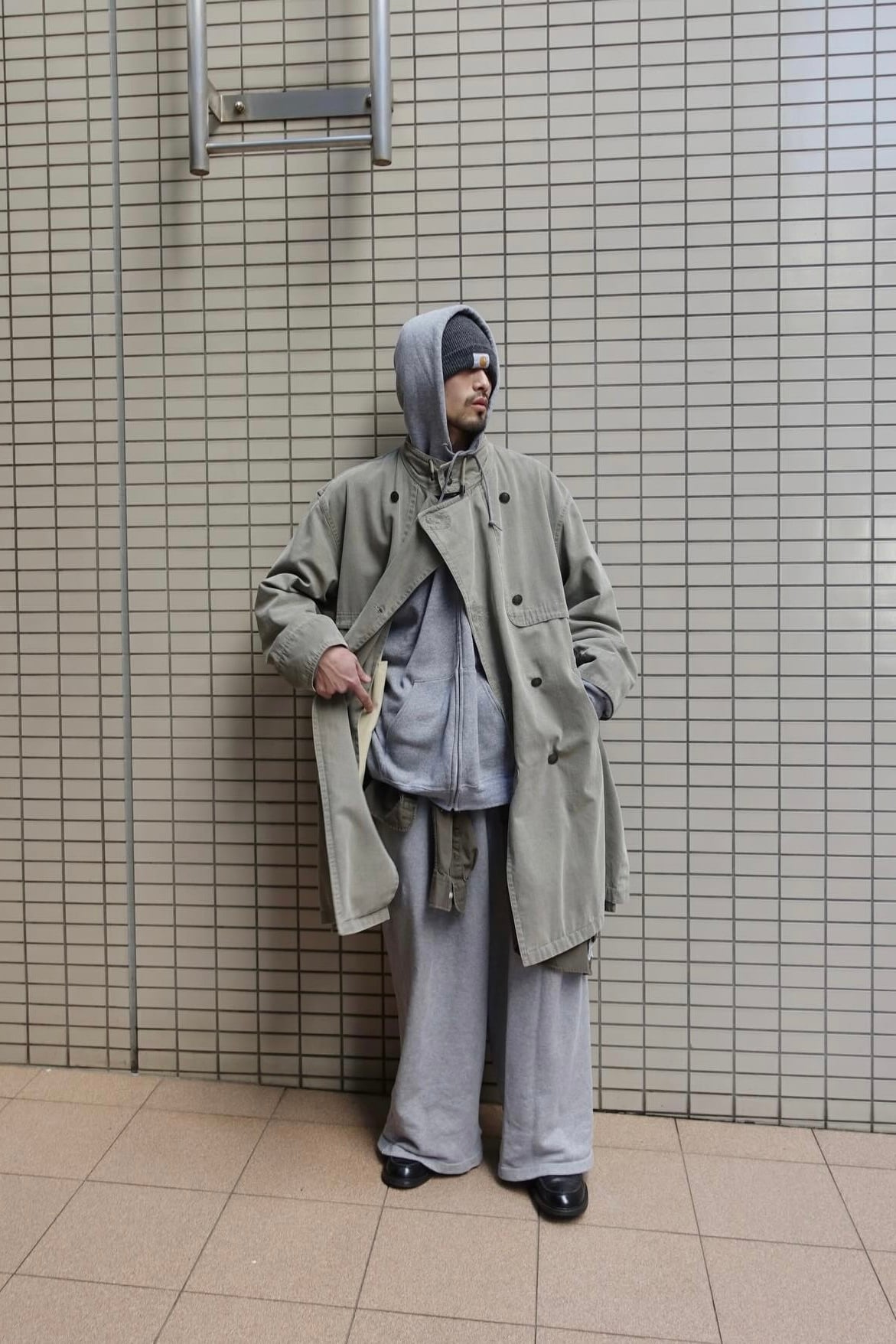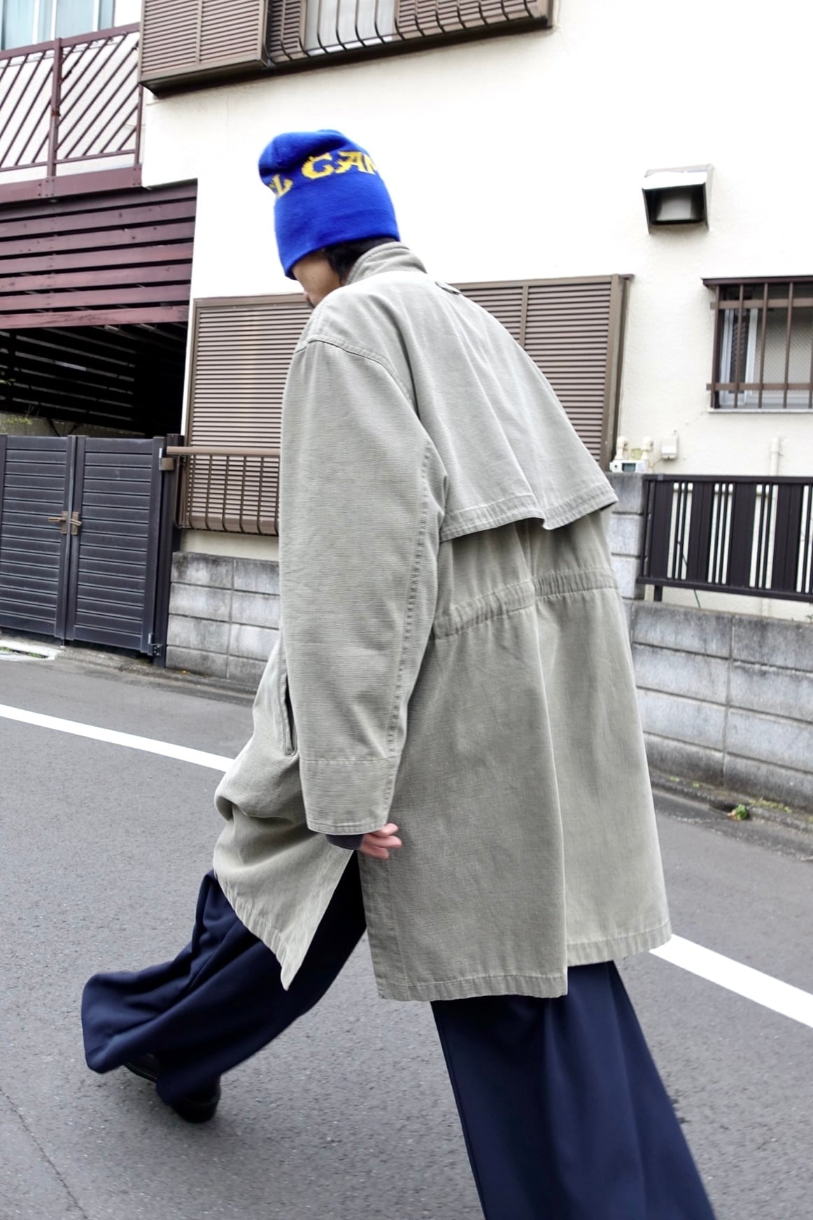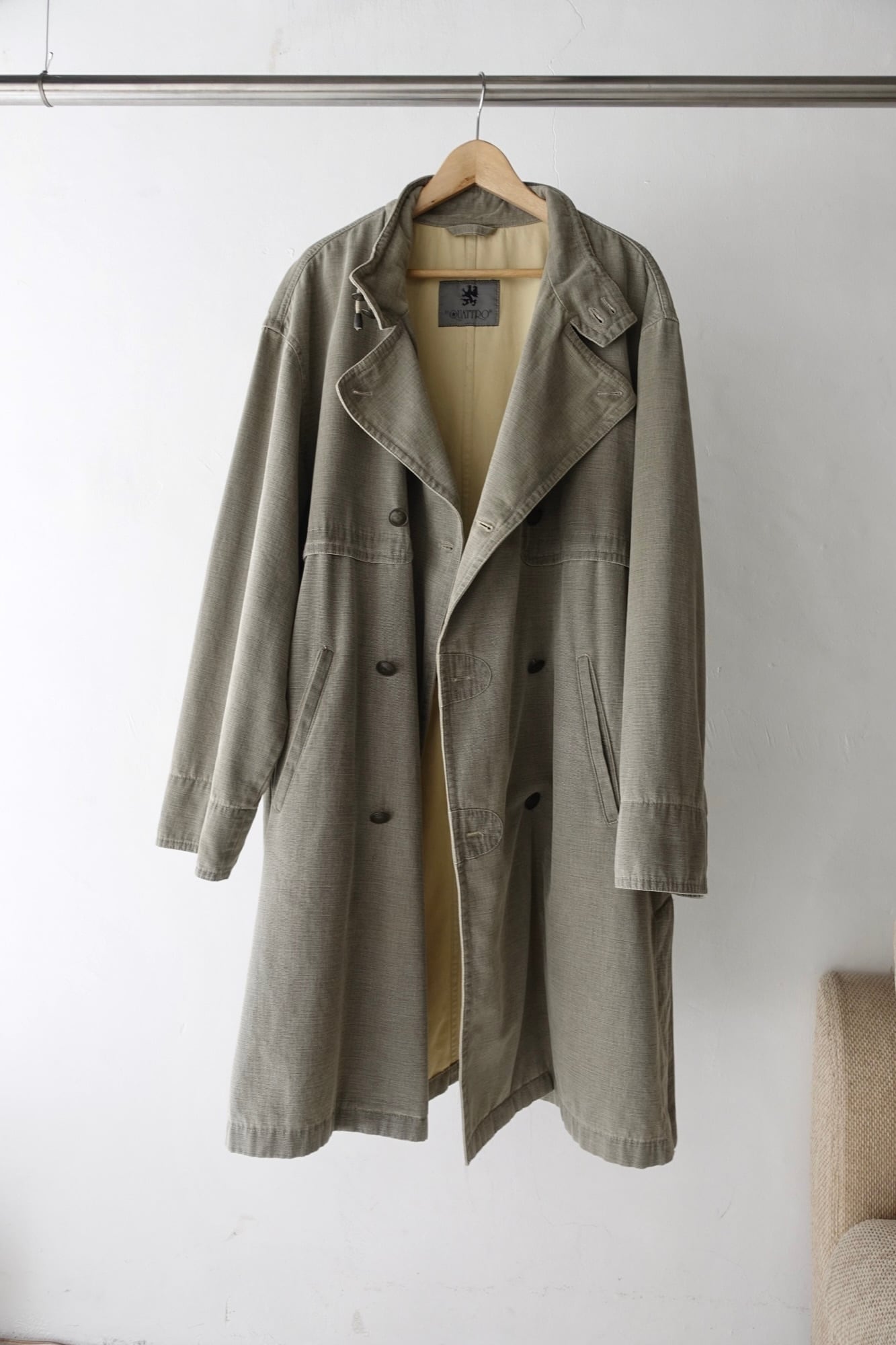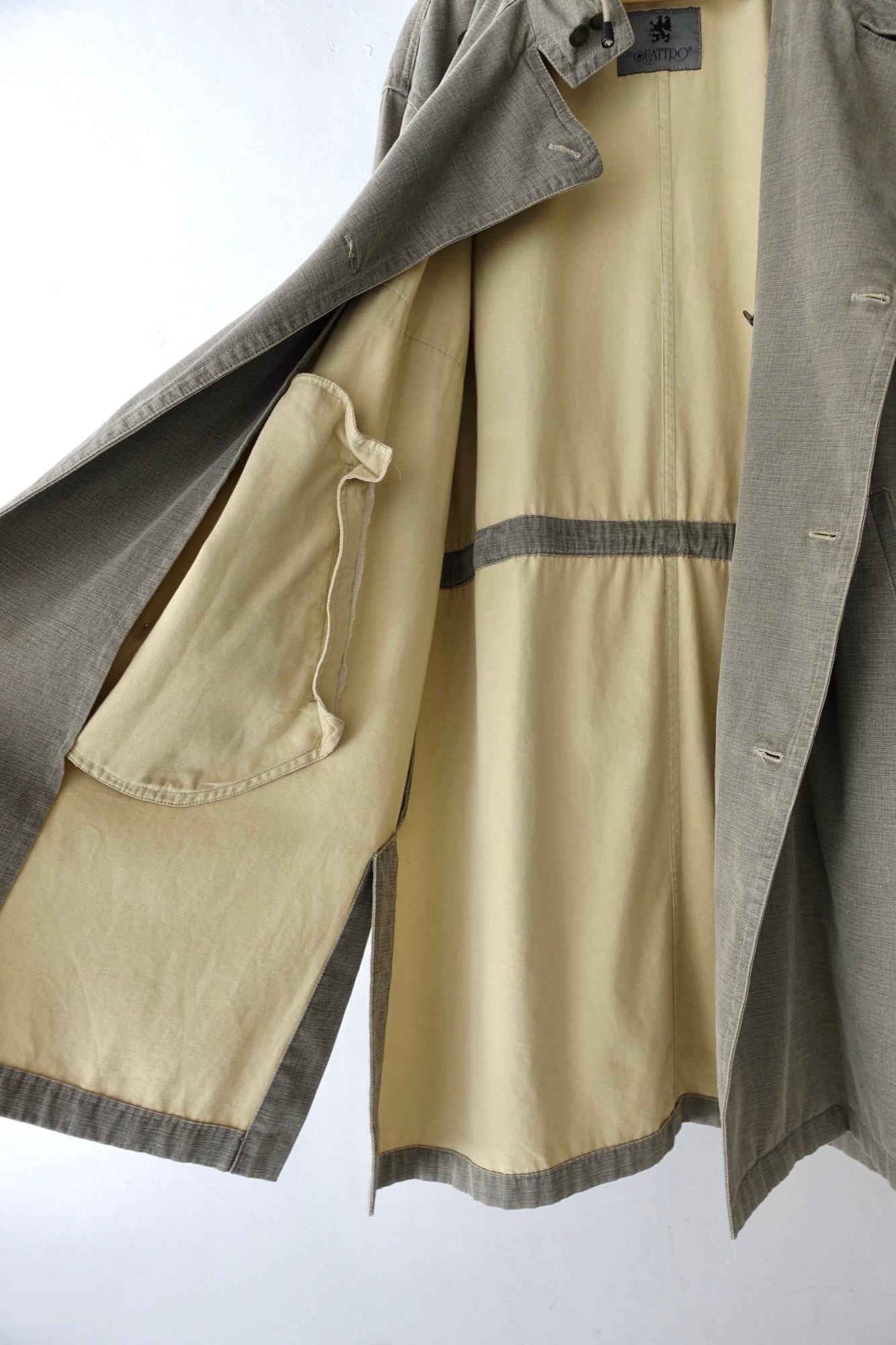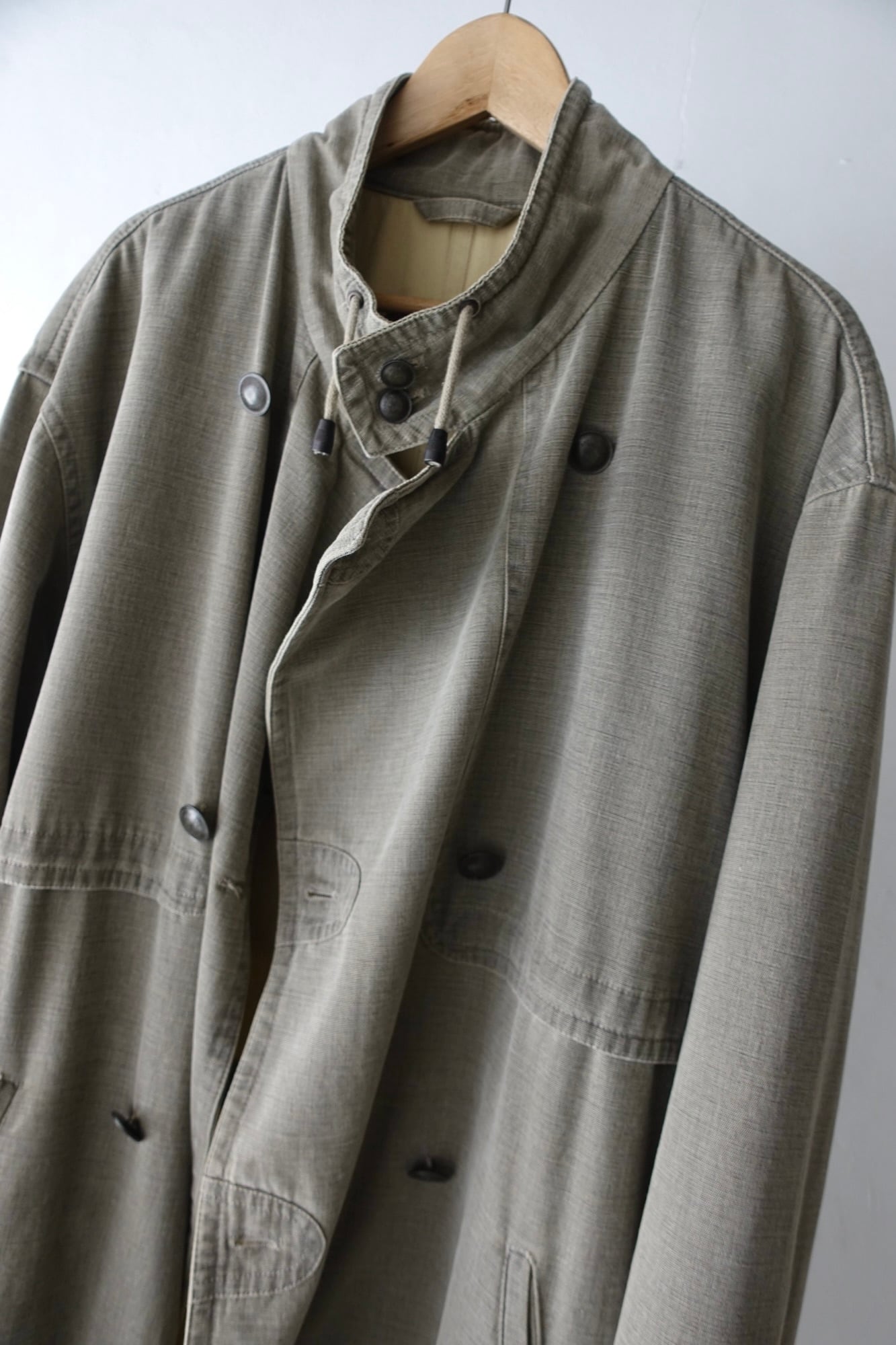 material : cotton, resin size: XL shoulder: 59cm width: 69cm sleeve: 63cm length: 105cm good fade cotton + resin coating oversize fit italy local label fitting: 175cm