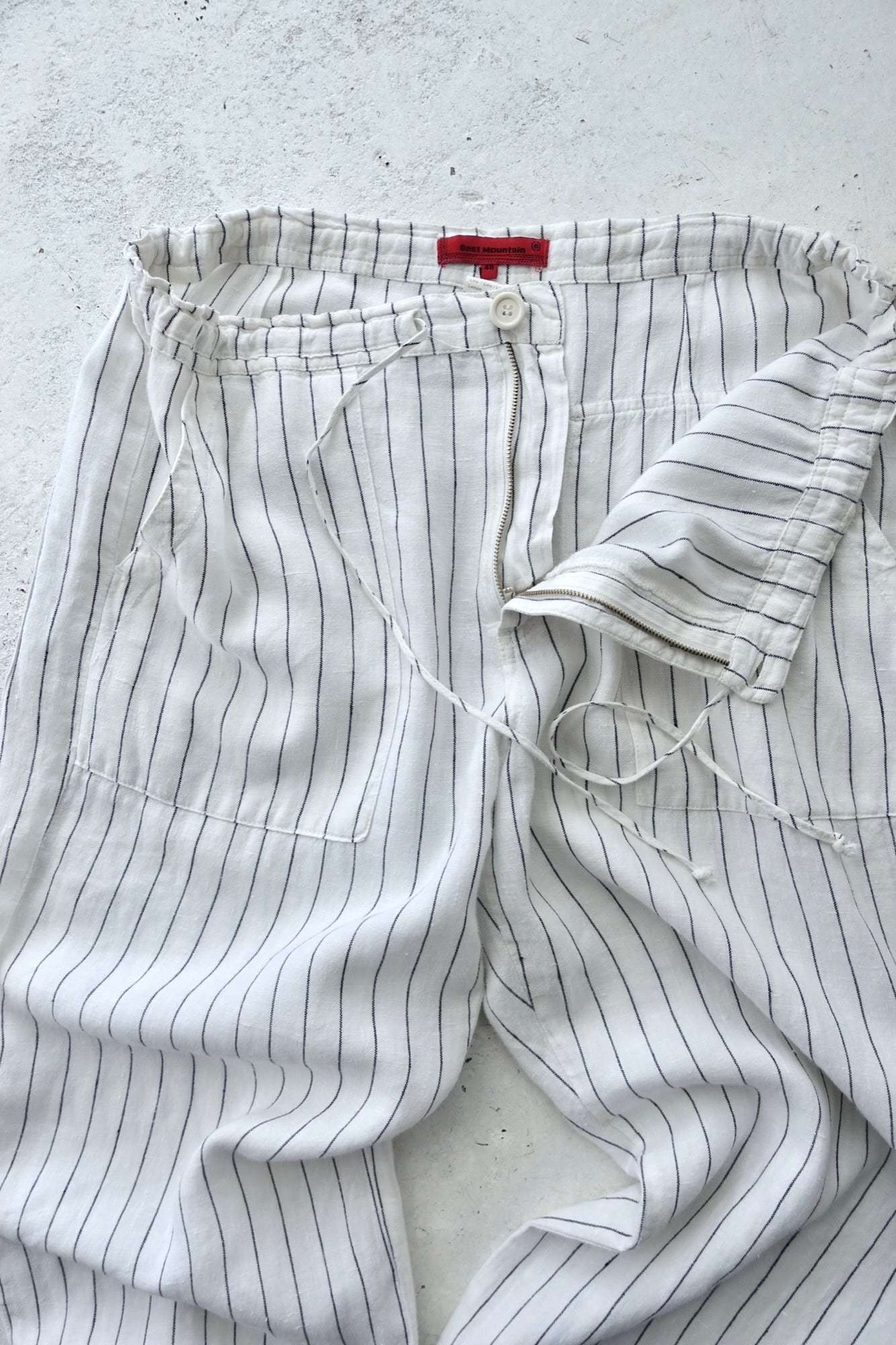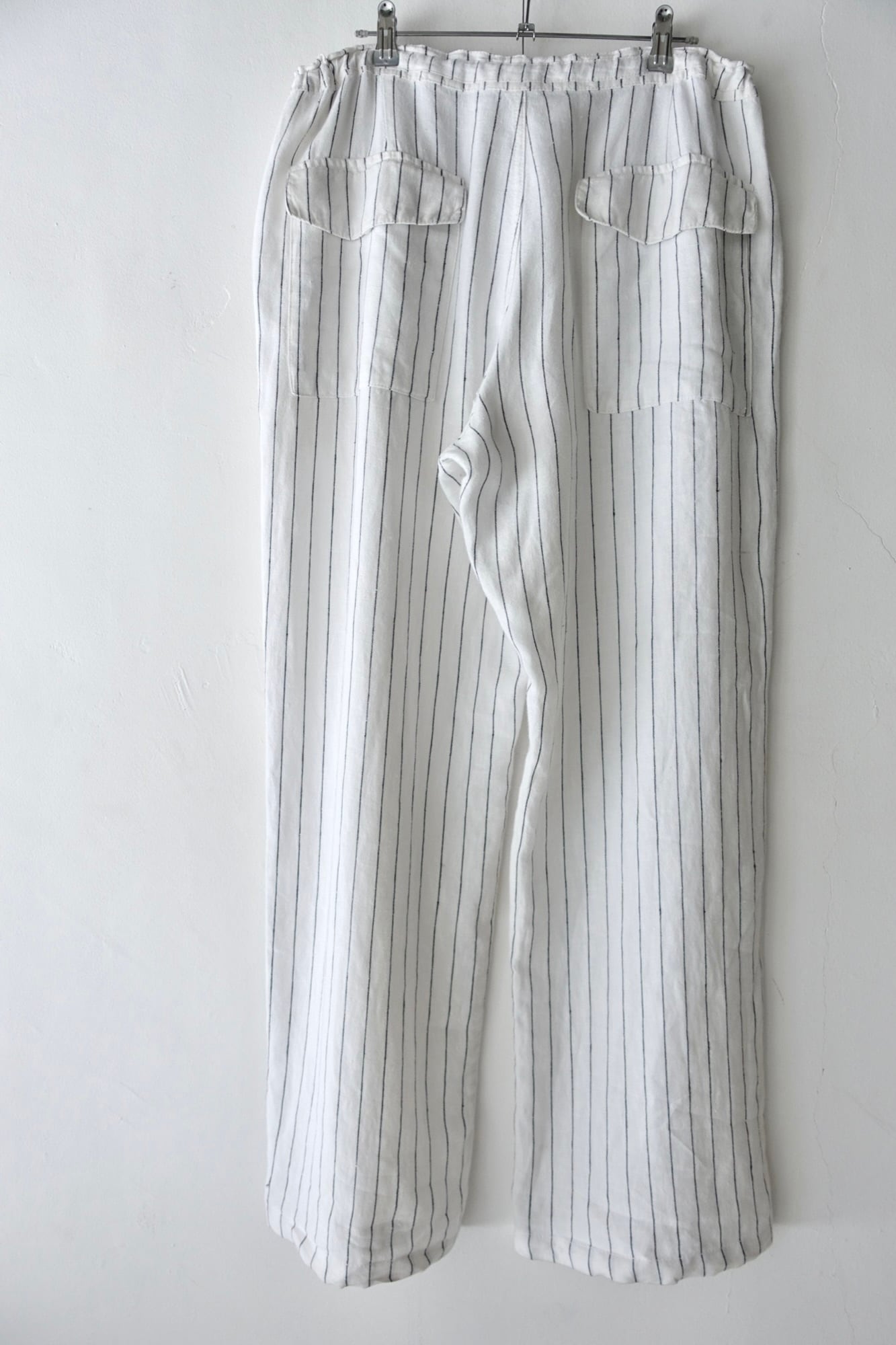 material : linen size: XL waist: ~50cm(drawstring) length: 103cm Inseam: 74cm hem: 28cm airy soft linen wide, loose fit fitting: 175cm