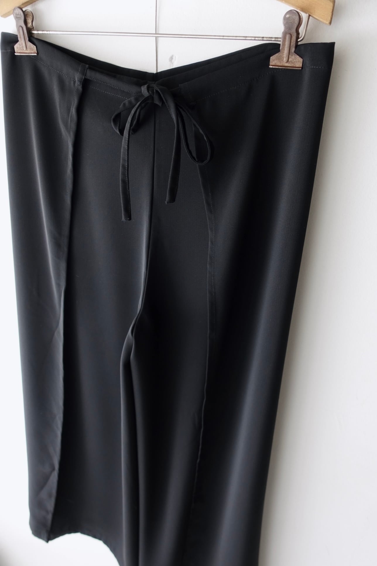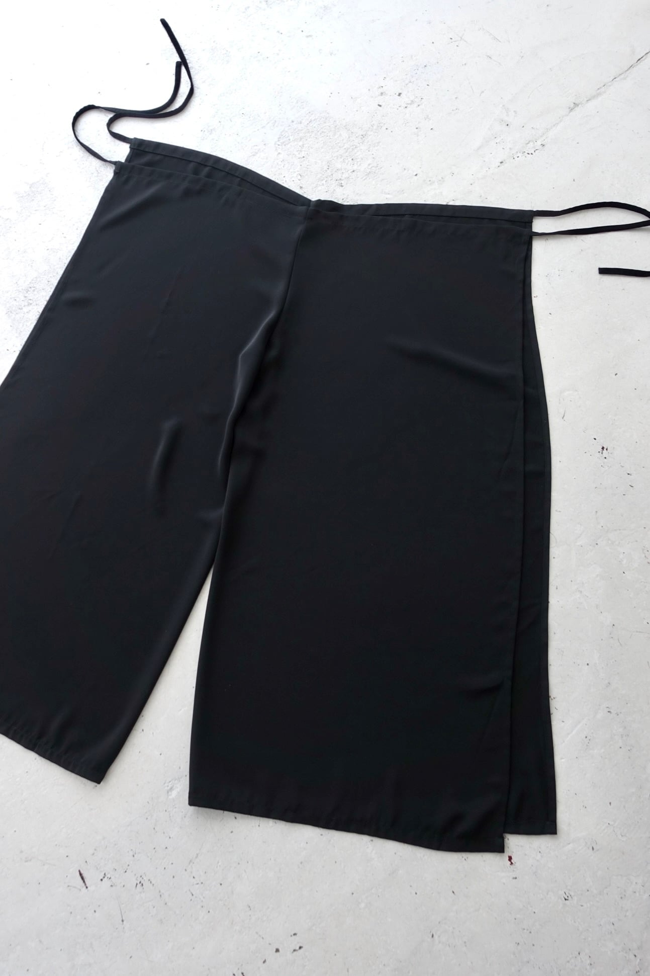 material : polyester size: free waist: free(drawstring) length: 95cm Inseam: 67cm hem: 46cm deformed shape wrap pants smooth, drapey super wide fitting: 175cm