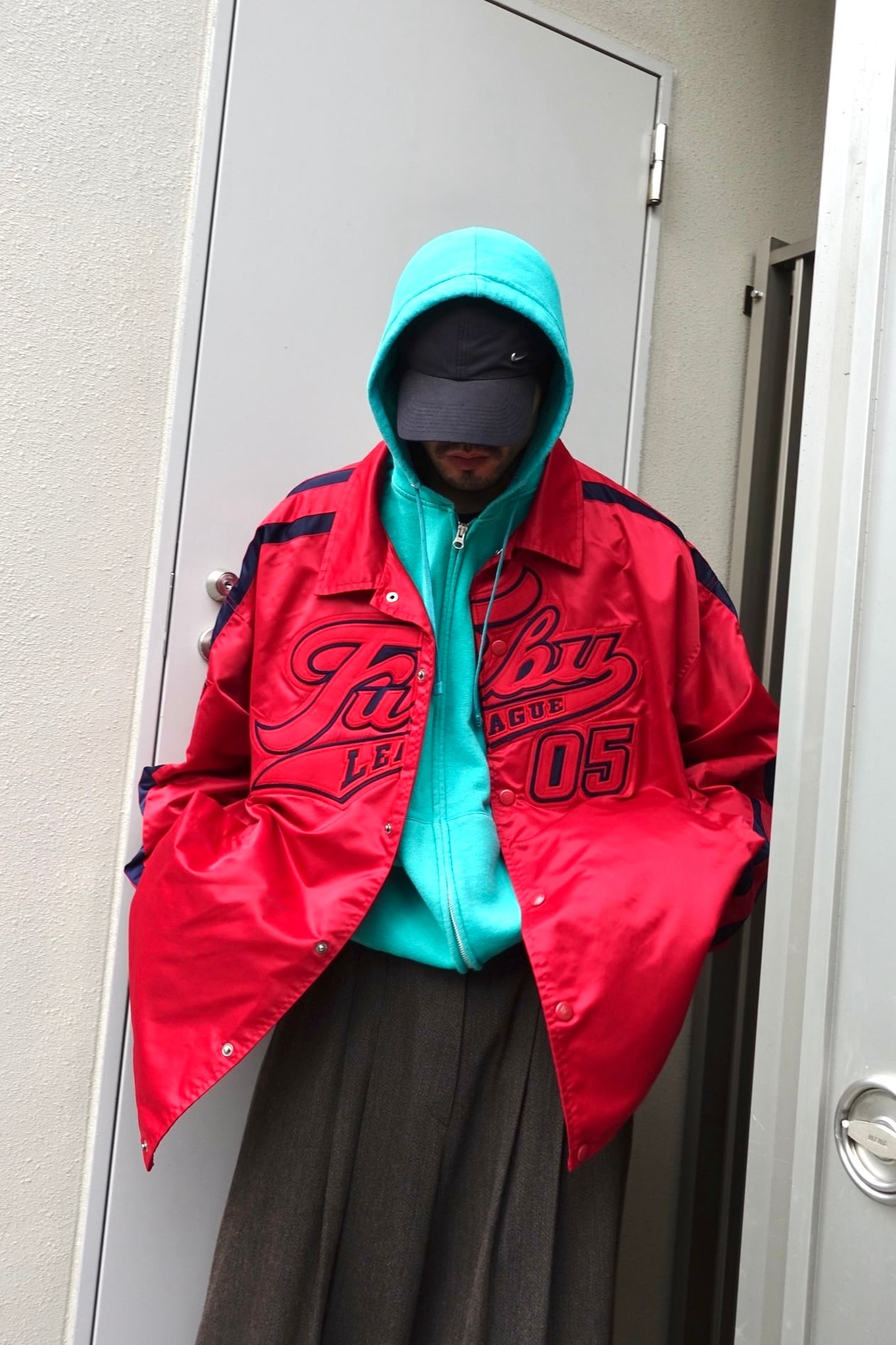material : nylon size: XXL shoulder: 69cm width: 80cm sleeve: 62cm length: 84cm shimmer nylon satin super big fitting: 175cm